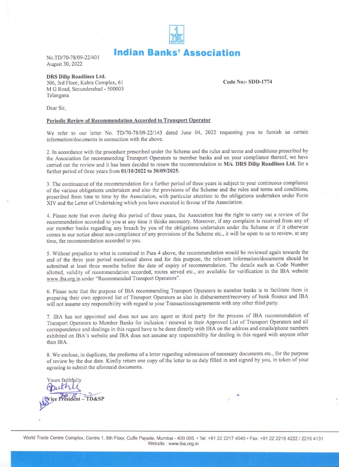 IBA Letter